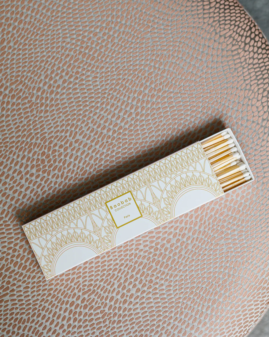 Matches My First Baobab Paris offer elegantly designed long wooden matches, perfect for adding a touch of sophistication to any candle lighting experience. Each matchstick combines functionality with Parisian charm, making it a stylish and practical addition to your home.