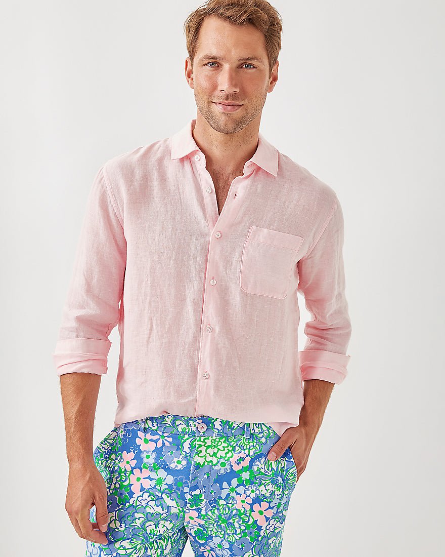 Our freshly imagined menswear collection has arrived, filled with timeless, resort-inspired styles like the breezy linen Men's Stuff Addison Shirt.