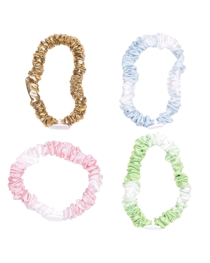 Valorizza il tuo outfit Lilly con questo grazioso set di 4 mini scrunchie. Non c'è bisogno di scegliere il tuo preferito: questi scrunchie offrono infinite possibilità di styling! Realizzati in una tonalità sfumata personalizzata e impreziositi da un logo bianco, questo set è sia un accessorio chic che un modo divertente per aggiungere ancora più Lilly al tuo look.
