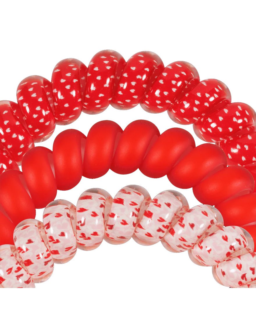 If you're looking for a fun and easy way to celebrate Valentine’s Day, the TELETIES have you covered! This three-pack features a mix of vibrant pink and red hues, along with playful, flirty charms that’ll add a little sass to your hair game. Not just cute, but practical, these hair ties are perfect for any occasion, especially when you want to match your hair accessory to your Valentine's vibe.