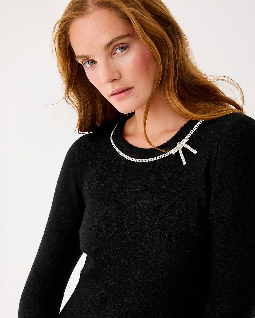 Cozy meets festive in our rhinestone-trimmed Morgen Sequin Sweater Dress.